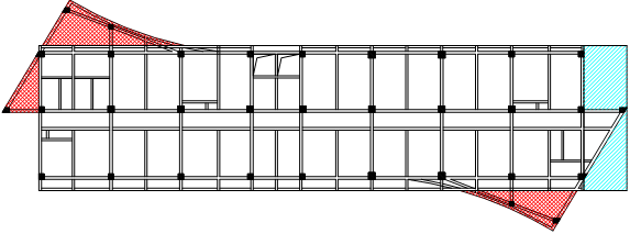 經試算,選取在各層圖6所示增設剪力墻的方案,剪力墻延伸至9層頂。